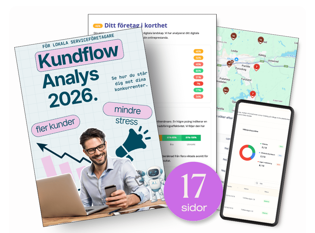 Lokala serviceföretag som hantverkare, bygg, VVS, städ, gym, behandlingar och liknande. Om du levererar tjänster och vill ha fler leads, bokningar och återkommande kunder, då är analysen relevant för dig.